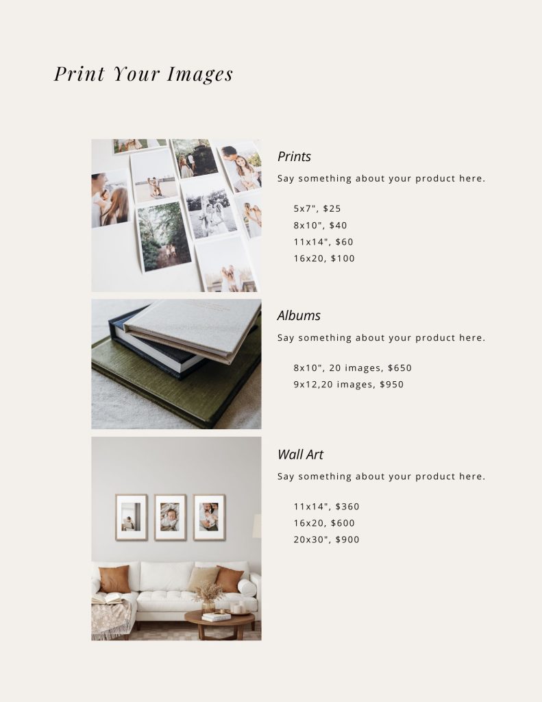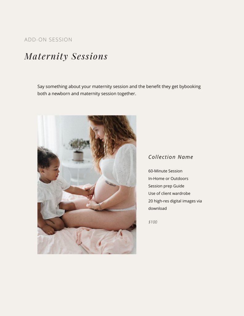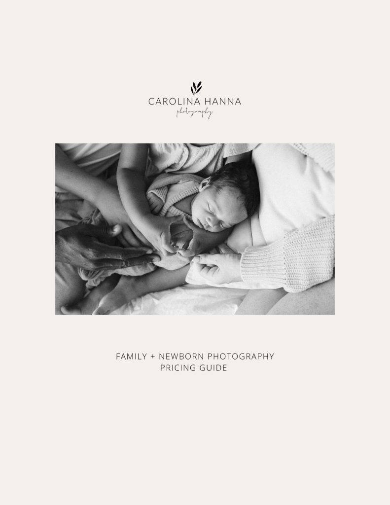 A pricing guide template designed for professional family and newborn photographers.